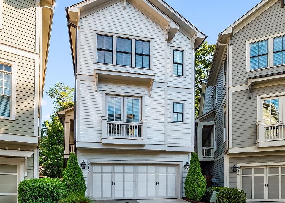 This three bedroom, three and a half bath, single family home is perfectly situated within a momentary distance of the coveted downtowns of Decatur and Avondale Estates. Enter through the two-car garage to find a spacious bed and bathroom on the main level, currently utilized as a home gym. There is also access to a fenced yard area perfect for pets. Upstairs opens to an airy living and dining room- with ten-foot ceilings and reclaimed wide plank hardwood floors that run throughout the home. French doors lead off the living room to a Juliet balcony overlooking the community pool. There is a wraparound front porch and a new custom stone patio surrounded by green space. The adjacent kitchen features cararra marble countertops, stainless steel appliances and a generous island perfect for food prep and entertaining. The top floor main bedroom features vaulted beam ceilings, a custom walk-in closet system and a large main bathroom with double vanity and a comfortable walk-in shower. Down the hall is a guest bedroom with a full en suite bath and a laundry room with built-ins. This newer home boasts neighborhood amenities such as a gated entrance, sidewalks and pocket park with an entertaining pavilion.