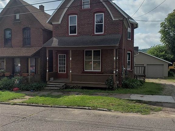Here's one cute house in Hancock that has so much to offer. It starts at the front with the brick exterior and open front porch and continues on to back of the lot with central air conditioning and the over sized 30 feet x 24 feet 2 car garage. Now for what's in between...The kitchen is updated with new cabinets, counter tops and has the on trend white appliances. Off the kitchen is a full bath and a pantry area. The dining room will charm you with its natural woodwork, built in cabinets and original stained-glass window. This room flows to the living room with more of the beautiful natural woodwork. There are lovely hardwood floors in some of the rooms on the main floor. The entrance hall is long and has a nice old door with an etched glass window. Up the steps will take you the next original stained-glass window. Here is the second full bath and the 3 bedrooms. The configuration may be challenging for some but there are new windows and new carpeting in two of the rooms and the larger bedroom has a wood floor with a large closet. The third floor is finished with tongue and groove pine on the walls and carpeting and spans the entire length of the house. This space could be another bedroom, play area, office space or very nice storage. The basement has high ceilings with new plumbing, electrical and a newer furnace. Location is good, close to most everything and on a dead end street. This would make a great starter home, rental or place for your college student to call home.