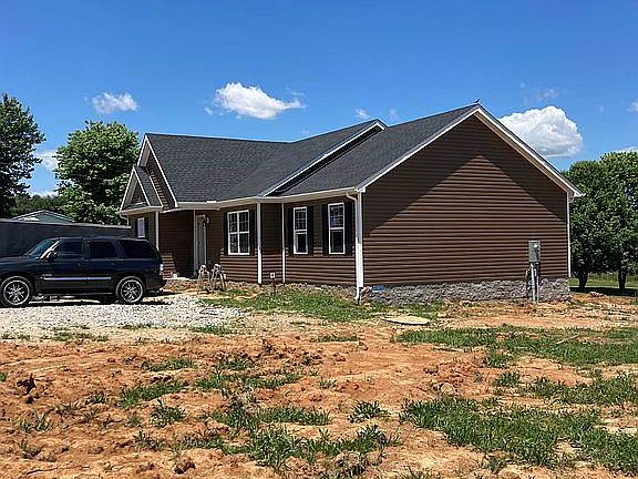 Beautiful new 3 bedroom, 2 bath home with 1426 finished sq ft has something for everyone! Split bedroom plan, vaulted ceiling in living room, trey ceiling in master bedroom, granite countertops and so much more! All bedrooms have ceiling fans and all closets have lights. The kitchen has a four piece Samsung stainless steel appliance package, granite tops, a matching glass and travertine backsplash and a pantry. Look over your large back yard from the 12x16 poured concrete Beautiful new 3 bedroom, 2 bath home with 1426 finished sq ft has something for everyone! Split bedroom plan, vaulted ceiling in living room, trey ceiling in master bedroom, granite countertops and so much more! All bedrooms have ceiling fans and all closets have lights. The kitchen has a four piece Samsung stainless steel appliance package, granite tops, a matching glass and travertine backsplash and a pantry. Look over your large back yard from the 12x16 poured concrete patio. Situated on a 0.82 acre lot. K&J Homes provides a one year limited builder’s warranty which begins on the closing date of the property. Walk through video available for viewing on K&J Homes Facebook page. No realtors right now. If we deem it necessary to use a realtor, we will list with my broker. Call Or Text Shelly at 270-670-6359 to view it today! K&J Homes provides a one year limited builder’s warranty which begins on the closing date of the property. Walk through video available for viewing on K&J Homes Facebook page. No realtors right now. If we deem it necessary to use a realtor, we will list with my broker. Call Or Text Shelly at 270-670-6359 to view it today! Read Less