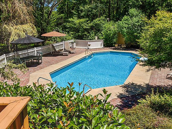 Showings forbback up offers. Immediate Occupancy and in time to enjoy swimming in your very own Pool! This place is an Oasis and is Located at the end of a cul-de-sac on a serene 1.5 acre privacy lot protected by preserved land with a Brand new Roof, This is a perfect backdrop for the charming aerated pond with its very own Gazebo. Enjoy a Heated In-ground Pool and Spa plus lots of yard space for a volley ball court and more. Located only a mile from the High School and major arteries. The elegant foyer showcases the Living Rm with hardwood floors, Fireplace and views of the pond. The dining room is accented with crown molding and chair rail with access to the butler pantry and sink, ideal for entertaining. A handsome study home office includes impressive stained book-shelves w cabinet storage and glass pocket-doors allowing for quiet conversations. The spacious breakfast room has a French door to the wrap-around deck and pergola overlooking the pool and privacy. The expansive Gourmet kitchen features a Fisher Paykel Dish dishwasher drawers, Gas range w oven plus an additional wall oven and built in microwave and sub-zero fridge. With lots of counter space, center island and a sit-up bar keeping the chef engaged in the activities of the family room which features an impressive oversized stone wood-burning fireplace. A mud room w built-ins and back staircase, powder room complete this level. Second level offers a master suite with a full bath with a updated tiled shower with a seamless-glass door as well as a jetted tub and double sink vanities, sitting room, and balcony overlooking the pool and woods...what a wonderful retreat! Three additional bedrooms on this level includes an En-suite with full bath and sitting room that access the rear staircase and main hallway. An updated hall bathroom has double sinks and tiled tub. The Laundry Rm with built in sink and cabinets is a real treat! A walk up staircase takes you to the third level featuring 2 more bedrooms and a large storage room (buyer could add a really luxurious bathroom in this space) The finished walkout basement with a powder room and double french doors is great space after a day in the pool. and enjoys views of the Pond. There is more space for your work-out equipment plus another 2 rooms for storage and the zoned HVAC. Once you visit this 5000 sq ft home situated on picturesque lot you will fall in love... A Must See! Security System and 1 Year HOME WARRANTY is included.