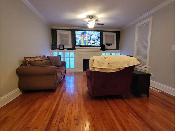 This home has plenty of space with 4 bedrooms, featuring a main floor master suite. Hardwood floors, crown moulding, sun porch, formal dining room, basement with workshop, raised garden beds, elevated back porch and custom shelving surrounding the fireplace.