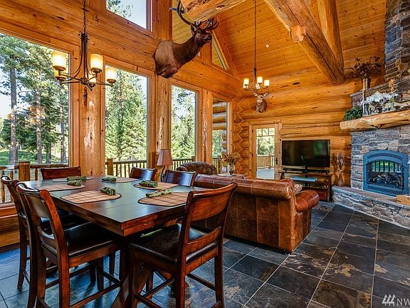 RARE OPPORTUNITY to own beautifully crafted log home in Suncadia. Custom log home on 5th green of Prospector Golf course with stunning golf and mountain views. Gorgeous slab granite kitchen with custom stone hood and wildlife mural over gas cooktop. 3 bedrooms and 3.5 bathrooms with radiant floor heating throughout. Spacious patio and decks great for entertaining. Potential for 2nd master setup. Move in ready with most furniture included in listing.