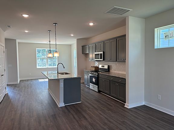 Walk to downtown Wake Forest, greenway trails and parks! Stroll through the community to the central square and enjoy 2 picnic areas overlooking greenspace! Near Wegmans and plenty of restaurants, cafes, breweries and shopping. Open, modern, End Unit floor plan with plenty of windows allowing tons of natural light. Home is situated next to green space area and community square. Enjoy your privacy on your 2 covered decks overlooking woods (which is rare in a town home!), luxury vinyl plank flooring, custom touches include custom coffee bar, Large luxury primary suite and bath with large walk-in shower, 2-1/2 car garage and 2 car driveway! Extra storage/workshop area in garage, custom built convenience center, designer upgrades throughout, washer, dryer, refrigerator included! Stainless steel appliances, gas range and gas furnace, 1Gb Fiber internet & 4 cat5 hard wired drops. This home is available 7-1-25. We also have the same floor plan available 9-1-25. 12 Month Lease Term, No Smoking in Home, Renters Insurance Required.