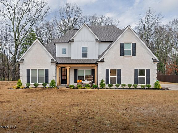 This stunning farmhouse style home is a must-see home in Desoto County!! It offers beautiful white brick on the outside of the home with black shutters and upgraded cedar posts on the front porch for that elegant clean look sitting on 1.6 acres. This home is better than new with tons of upgrades done by the seller when the home was built. It has all hard wood floors in all living areas and bedrooms downstairs. The kitchen was upgraded with quartz countertops, a gorgeous wood vent hood, a huge farm sink, an upgraded dishwasher, and upgraded lighting package. The open concept makes for the perfect entertainment gathering spot. The primary bedroom has drop down ceilings with painted ascent, also an upgraded barn door headed into the main bathroom. Both closets have been upgraded to ceramic glazed tile floors and the walk-through shower is absolutely amazing with a huge soaker tub in front of the shower. It also has separate vanities with upgraded lighting. All bathrooms are upgraded designed ceramic tile and gloss for a wonderful contrast between the hardwood and bathroom transitions. The upstairs has another full bathroom with upgraded tile. There are 2 good size bedrooms and one bonus room that can be used as a fifth bedroom. This home has so many upgrades and so much to offer for anyone looking for a new home to purchase. Schedule your showing today before it flies away like the winter wind!!