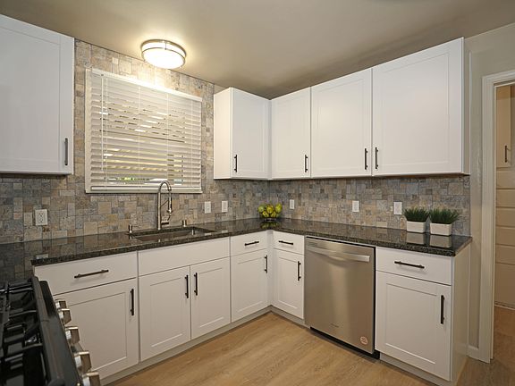 Bright & open floor plan. Renovation just completed! New windows. New interior and exterior paint colors give the home a mid-century modern feel. Classy new kitchen cabinets, granite countertops, tile backsplash and stainless steel appliances. New LVP and carpet. Renovated bathroom with tile shower. Upgraded fixtures. Functional floorplan. Laundry room. Low maintenance front yard landscaping with additional parking area. Large covered patio. Huge 400 SF detached garage/shop. Large backyard with alley access. Great curb appeal!! Turn key! Must see!!