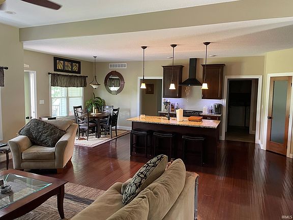 Absolutely gorgeous home inside and out. Built in 2018 with a country feel but city amenities. Open concept with 10' ceilings, trey ceilings, granite counter tops, wood flooring, stainless steel appliances. A full unfinished basement with ingress windows, and plumbed for bath, 41x9 stamped concrete deck, paved drive, 3 car attached garage PLUS a 60 x 36 pole barn for additional storage plus a beautifully finished man cave. Large fenced back yard and a 16x16 workshop. All situated on 2.43 acres. All this and so much more! Additional 2.43 acres could be purchased also. MLS #202241154