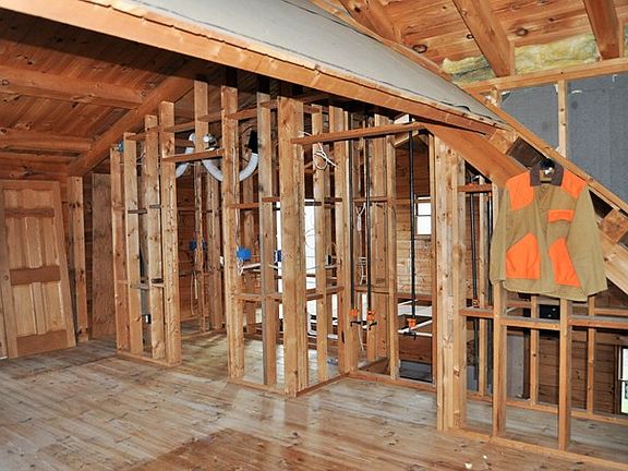Handyman's Paradise! This log home sits on beautiful acreage on a quiet road in the country. The house has all of the furnishings to finish the inside to include knotting pine boards, kitchen cabinets and a raised granite platform in the living room for wood/coal stove. There is a full workshop in the basement that is a handyman's dream! Customize this log home to make it your own!