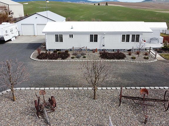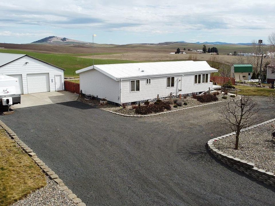 MLS# 259974 Come make all your dreams come true with this immaculate spacious retreat with great views. This large lot is a quiet oasis located by the 'highly accredited' Garfield School. Fully fenced, circle drive with large 30X40 shop with lots of room to store toys, tools and equipment. Shop has a separate insulated office room, enclosed protected dog kennel and pellet stove. Home has lot of storage including a 8X12 storage shed and RV parking with electrical hook ups. Home is newly painted with new flooring, laminate and stain resistant carpet. Beautiful new Trex deck with awning overlooking the gorgeous views of the Palouse with a fire pit asking to be lit. Yard has irrigation system and frost free spigots including 3 apple trees. New pellet stove in living room and AC for the summer months. Walking distance to the Garfield Community city pool. Come check this out!!!