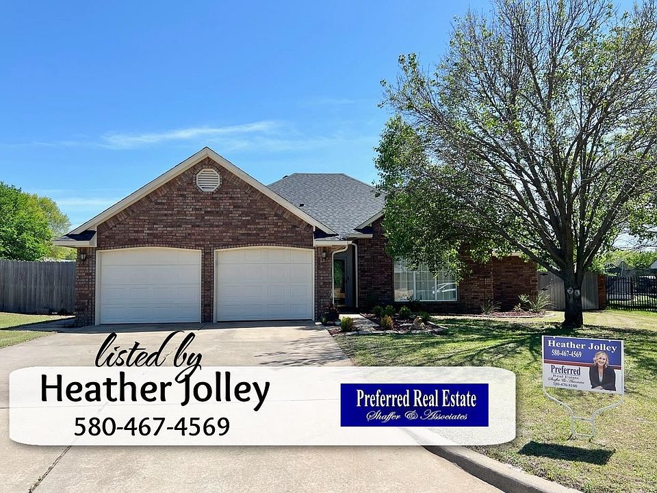 Listed by Heather Jolley Preferred Real Estate 580-467-4569. Beautifully updated, well maintained, move-in ready home located in a desired neighborhood. The interior of this home is just stunning! With numerous updates being made within the last 4 years, including roof and gutters, granite throughout, sinks, faucets, light fixtures, flooring, hot water heater, heating unit and to create the final updated look it has been professionally painted. Walking in the front door you are greeted with a large entryway, open living room with gas fireplace and a formal dining area. The kitchen has gorgeous granite countertops, breakfast bar and dining nook. All kitchen appliances pass with the sale of the home. The master bedroom is spacious with tray ceiling, sitting area with natural light and a door leading to the back covered patio. Master bath has dual vanities, walk-in shower, jetted tub and walk-in closet. The additional bedrooms are a nice size and have walk-in closets for plenty of storage. The home sits on just a little over a quarter of an acre and has a sprinkler system in the front. Rayne water purifier, walking track nearby, grade school and hospital just blocks away. Centrally located to shopping, schools, restaurants and the bypass for easy travel to surrounding cities. THIS HOME WON'T LAST LONG! Call for a showing today!!