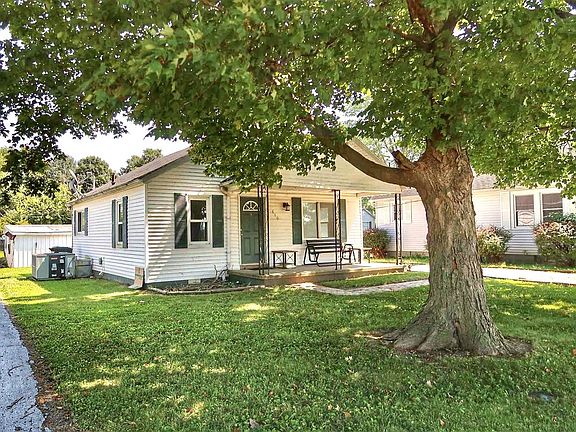 Cozy Ranch with covered front porch, shade trees, 2 Bedrooms, Eat-in Kitchen, Full Bath, Garage, spacious backyard with firepit and partially fenced. Appliances stay, including washer and dryer. Buyer home warranty is included.