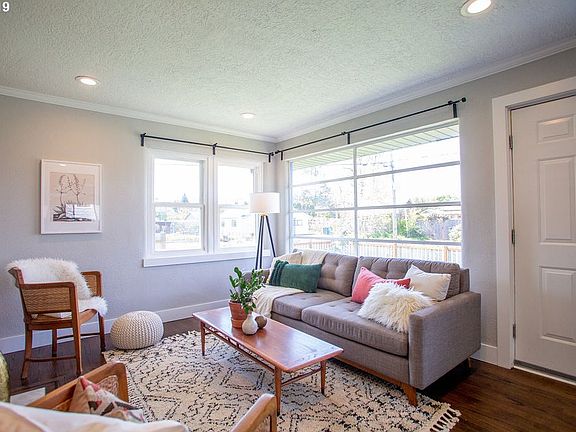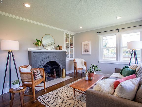 Light filled ranch on oversized corner lot. Updated in 2017 including new roof, electrical, plumbing, furnace w/AC, hot water heater, updated windows, and fully permitted finished basement. Beautiful modern kitchen, bath, original hardwoods + fireplace. Basement with two bedrooms, family room with fireplace, full bath, exterior entrance at top of stairs offers flexibility or rental potential. Fenced yard+raised beds. [Home Energy Score = 6. HES Report at https://rpt.greenbuildingregistry.com/hes/OR10093741]