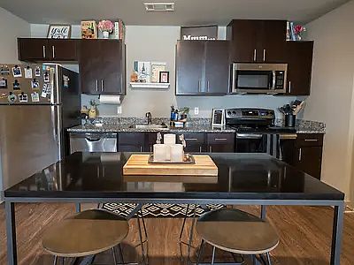 Spacious private room, closet, and bathroom with shared living space. Room comes with mattress, bed frame, desk, nightstand, chair, and dresser. Cute space to make your own. Hardwood floor in bathroom and shared space. Carpet in both bedroom and closet space. Utilities paid by landlord except for electricity and WiFi. The lease is a re-let/temporary lease until August but once you move in and the lease is up, you can always renew it for another year. Move in Date : June 1st