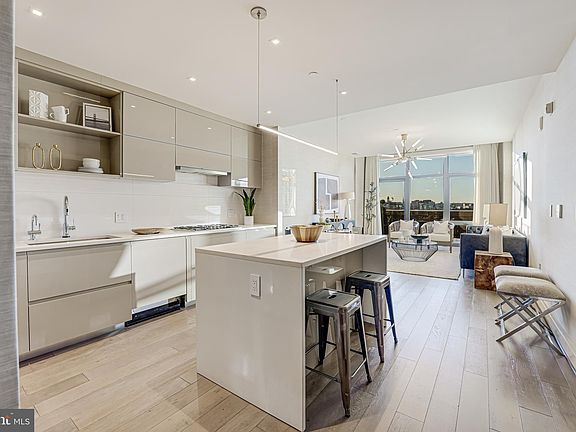 Welcome to Unit 804 at The Perla, an exquisite upper-floor, two-bedroom condominium offering breathtaking westward views from an expansive 320-square-foot private entertaining terrace. This luxurious 1,172-square-foot residence is bathed in natural light and features customized high-end finishes throughout. The open gourmet kitchen boasts custom Italian cabinetry, Bosch and Thermador appliances, and a 50-bottle wine refrigerator, making it a chef's dream. Seamlessly blending indoor and outdoor living, the floor-to-ceiling windows in the living area open directly onto the private terrace, where you can enjoy panoramic skyline views, including the Washington Monument and National Cathedral. The primary suite is a serene retreat with designer wall coverings, a fully custom walk-in closet, a spa-inspired bathroom, and direct terrace access. The second bedroom is equally impressive, with custom built-ins, an oversized closet, and abundant natural light. Additional conveniences include a full hall bathroom and a separate laundry closet. The Perla is a LEED Gold Certified building, emphasizing energy efficiency and sustainability. Residents enjoy full-time concierge services, expansive rooftop entertaining spaces with unbeatable views, bike storage, and EV charging stations. Located in a prime neighborhood with a Walk Score of 95 and a Bike Score of 99, this property offers unparalleled convenience. It’s just across the street from Giant Supermarket, one block from the Mt. Vernon Square Metro (Yellow & Green Line), and four blocks to CVS, with abundant bike and bus lanes nearby. Food enthusiasts will appreciate the proximity to some of the city’s best dining destinations, including Convivial, SUNdeVich, La Colombe, Unconventional Diner, Ghostburger, All-Purpose, Chaplin’s, TallBoy, Tiger Fork, Starbucks, The Delegate, Nina May, The Dabney, Oyster Oyster, and Chercher Ethiopian. This is urban living at its finest!