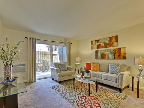 The kitchen offers granite counters, a new oversized sink, white cabinets and appliances (very on trend!) and lots of natural light. The bathroom has been updated with shower walls of travertine and a marble counter. There is a wall A/C unit in the living room and a ceiling fan in the kitchen for hot summers and a gas burning fireplace for cosy winters at home. The interior, including all the closets, have been freshly painted for the new owners. Ample of storage including a very large walk in closet, a full bank of closets in the hallway, spacious kitchen cabinets and additional storage on the patio. Wood laminate flooring and taupe carpet complete this beautiful property. Bart (~2 1/2 miles) makes your commute to San Francisco a quick 35 minutes. The free shuttle to Bart runs nearby. Trader Joe's, Starbucks and dining are all within a block. Owner occupied only at this time.