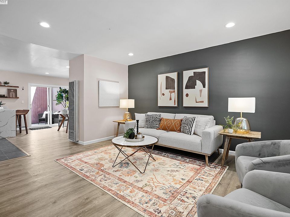 Who wants a relaxing place in the shade to beat the heat? This gorgeous updated 2bd, 1.5ba condo is just that. Unit faces the pool, surrounded by developed trees and landscaping, it's like living in the park all the while you're just minutes away from easy access to the freeways, BART stations, shopping, schools, and so much more. Parking is right outside the private patio, no stairs to deal with while unloading the car. Tastefully updated kitchen, bathrooms, and A.C. window units. Overall a must see!