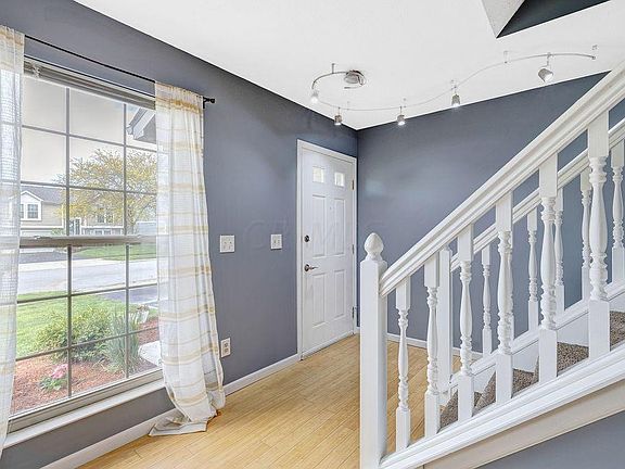 Westpoint, Hilliard Schools - 4 bedroom and 2.5 Bath, 2 Story with 2 car garage and a spectacular fenced yard and views of the Pond. Granite Counters, Stylish Backsplash, Stainless Steel Appliances in Island Kitchen and First Floor Laundry. Dining Room, Eating Space with Bay Window, and Family Room with Gas Fireplace. Painted White Trim throughout, Freshly Painted throughout the home. Deluxe Owner's Suite with Vaulted Ceiling, Double Window overlooking Pond, and Private Owner enSuite with Separate Tub, Shower, Dual Sinks, and Walk in Closet. 3 additional bedrooms and full bath with tub/shower complete the 2nd floor. Flooring installed in Basement. Deck with built-in seating overlooking large yard.