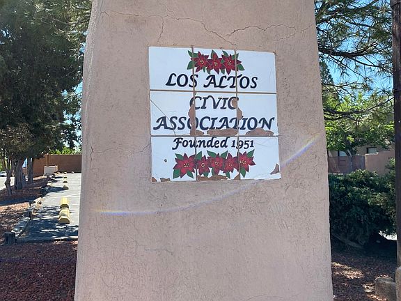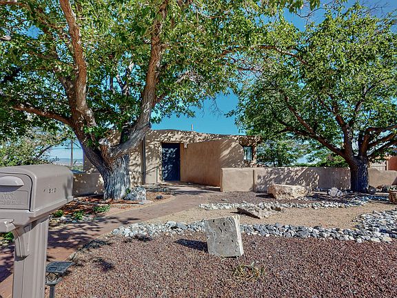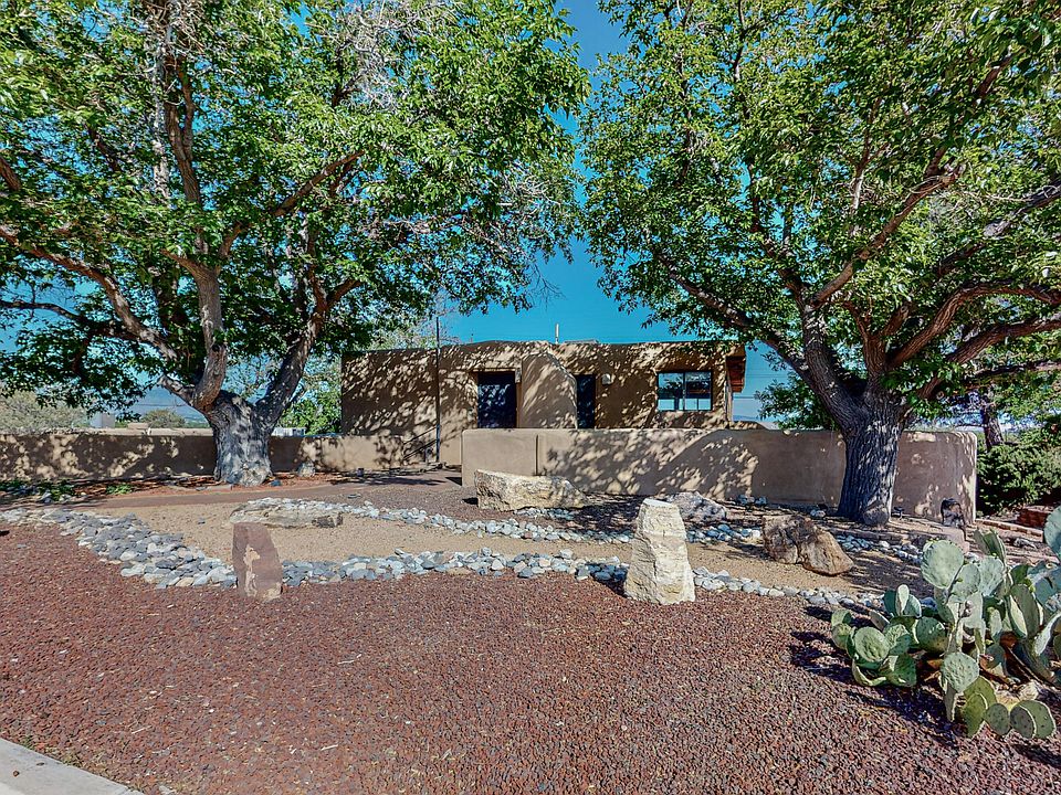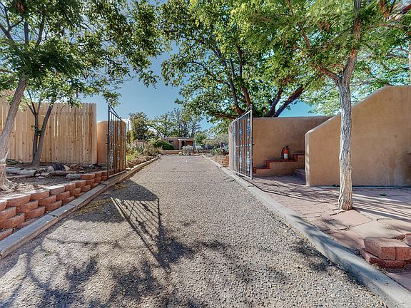 WOW! Located in the historic neighborhood of Los Altos Civic District in the heart of the South Valley, this custom home is so unique and surrounded by other historic well maintained and sought after mostly adobe homes. This home backs to the bluff and has stunning views of the Sandia Mountains and the city! With a closed in patio/sunroom for extra entertaining room to enjoy these extraordinary views. This home has great bones and is ready for someone to come in and make it their own. Rustic authentic feel with Vigas and brick floors, gas log FP in main living area. Tons of living space and several outdoor patios. Upstairs there could be a possible 4th bedroom/guest/in law quarters w a small kit w sink. Back yard access with large gate to drive down into the yard or store vehicles etc.