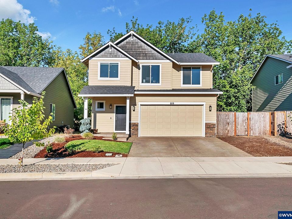 Well-maintained 2021-built 4-bedroom, 2.5-bath, 1,881 sq. ft. two-story home with an open floor plan featuring laminate flooring and wood-wrapped windows on the main level. Living room includes a gas fireplace. Modern kitchen offers quartz countertops, stainless steel appliances, gas range, full tile backsplash, craftsman-style cabinetry, and large pantry. Energy-efficient 95% gas forced-air furnace with central A/C. Spacious primary suite with walk-in closet and full bath with dual sinks.