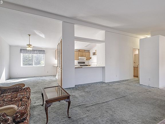 Come check out this 1996 manufactured home on large lot with detached garage/shop and tons potential throughout. Home features spacious primary bedroom with large walk-in closet and bathroom suite. Open living room, dining room and kitchen with gas appliances, gas water heater and gas furnace. 2nd and 3rd bedroom of approximately equal size with a shared full bathroom down the hall. Laundry room with exterior entrance to back deck and yard. Outside features fenced yard with plenty of room for a garden, old greenhouse, mature fruit trees and landscaping. Detached two car garage with ample storage above and workshop behind with heat and bathroom facilities. More potential throughout the property with riverfront access (it is in the floodplain). Driveway parking for several cars and possible RV. Bring your finishing touches to update and make it your own! Come enjoy small town living today!