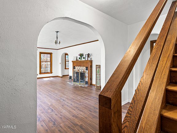 Want to wake up in a cheerful home? Then this adorable yellow house located close to Franklin Park is ready for you! Take steps up along blooming flowers to step inside and find the most beautiful front room to grace the MLS in ages. Check out the original wood trim around the lead glass windows, the period light fixtures and the fantastic fireplace. The look is original 1935 and exquisite! Glass knobs, built in cupboards and arched doorways - so charming! Elevated off the street you can see east over the rooftops so expect lovely sunrises! Inside you will find a large kitchen with so many cupboards, an island, big window looking out the back, and a built in breakfast nook area and pantry. Through the swinging door just open to the living room a formal dining space. Up the stairs you will find a full bedroom and bathroom and in the lower level a good sized bonus room perfect for getting cozy using the pellet stove and watching a movie. A small room just the other side of the wall of bookshelves is perfect for a study. The lower level does have its own entrance in the back or through the single car garage man door, and with the half finished second kitchen and 3rd bathroom, it might be perfect for the person still living at home or someone needing separate living from the upper floors. The laundry and furnace room are here along with a windowless room convenient for storing boxes and belongings. Walk out back and you have an oversized backyard, half of which is grass and half covered in wild ivy and one very old grape vine next to the wood deck - wonderful exterior living space. The back yard is fenced, (its just not very tall,) but here you can have your own private & small forest-like feeling backyard. This home is spacious and could never be described as boring or cookie cutter. The sellers just upgraded the plumbing, added luxury vinyl plank flooring from Standard Paint, multiple freshly painted rooms and light fixtures and a thumbs up on the furnace function.
