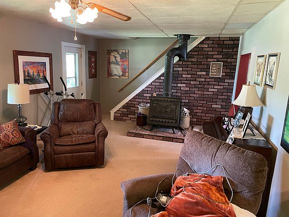 Quintessential farmhouse acreage with a 4 bedroom, 2 bath home. The acreage has 5.2 acres of grass, woods and fruit trees. The home has primary, bath, dining, kitchen and living on the main floor. There are 3 additional bedrooms and a bath upstairs. The living room has a woodburning stove to help with energy costs. The home is all electric.