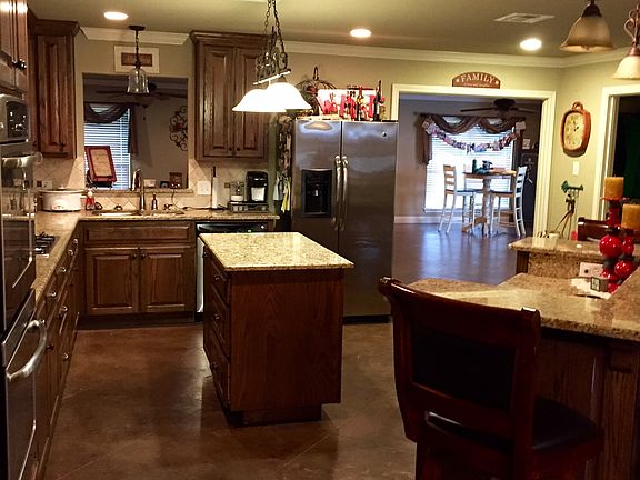 Beautifully maintained open concept, 3 bedroom, 2 bath home on 2 acres. 2,420 sq ft with concrete floors throughout. Granite counters, solid wood cabinets, and a huge living space for entertaining. The backyard is ready for guests with a brick patio, pool, pergola, privacy fence, and a workshop. Come home to your own piece of heaven!