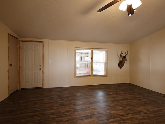 The outside of the home has T1-11 siding, 2018 metal roof, vinyl windows all on a full foundation. At both entrances to the home, there is a covered porch as well as an insulated enclosed porch. Inside, numerous modern updates enhance its appeal. Laminate flooring spans most of the house, complemented by LED lights a fresh paint job. Upon entering from the driveway, you'll find a laundry room setup with extra storage. The kitchen is open and features updated appliances, plenty of cabinet space, and a charming blue pine accent that creates a cozy atmosphere. The master suite, with newly installed carpet, includes a ceiling fan, a walk-in closet, and a private full bath. The full bathroom has a large vanity space, towel closet, a medicine cabinet. The remaining two bedrooms require new flooring, their bathroom is fully equipped and ready to use as it also has a medicine cabinet and extra vanity storage.
