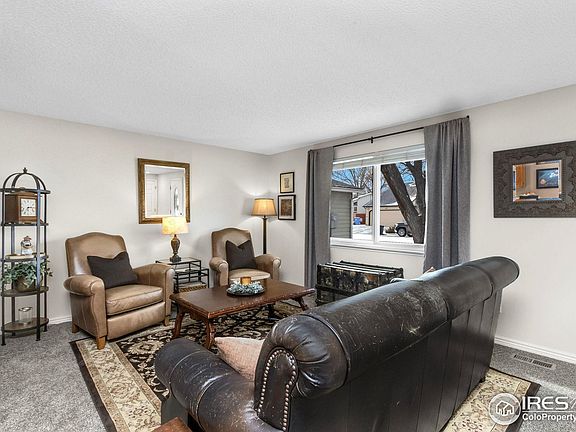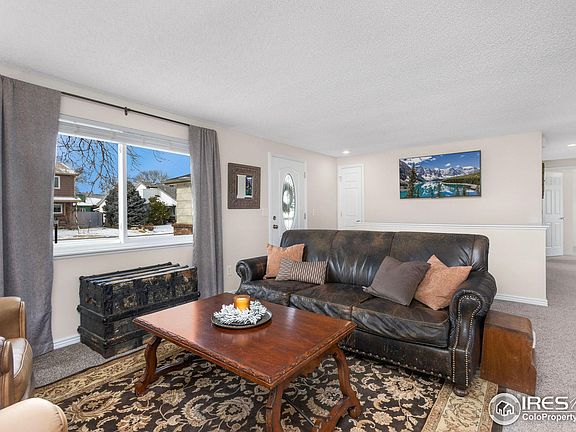 Situated within minutes from local parks, schools, shopping, and the mountains; this beautifully updated ranch-style home combines modern upgrades with functional living spaces, offering a truly move-in-ready experience. The home features newer windows and roof, ensuring energy efficiency and long-term durability. Inside, the kitchen shines with brand-new quartz countertops and backsplash, a black undermount-sink and hardware, while freshly installed carpet and pad add comfort throughout the main floor. A recently remodeled main level bathroom offers 1st floor living and compliments the wood floors in the kitchen and dining areas. A newer hot water heater and updated interior paint complete the list of enhancements, making this home both functional and practical. The open floor plan connects the living room, dining area, and kitchen, creating a seamless space for daily living and entertaining. 3 bedrooms and 2 bathrooms on the main floor provide ample room for family and guests, ensuring comfort and convenience. The partially finished basement adds flexibility, featuring a completely finished additional 4th bedroom with brand new carpet and pad, a dedicated laundry area, and rough-in plumbing for a future bathroom, allowing you to customize the area to fit your needs. Utilize the space for storage or add equity and value by finishing the entire space. The exterior offers a back patio and a low-maintenance yard, perfect for those who want an outdoor retreat without extensive upkeep. No HOA allows for freedom to use your home and space without extra taxing districts or fees. Enjoy all the amenities Loveland has to offer, along with the home's updates, functional design, and convenient location; making it a standout choice for today's homeowners.