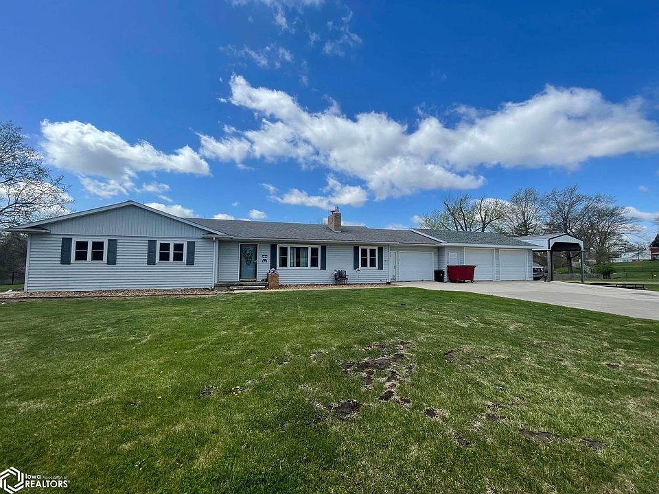 Welcome to this inviting 3-bedroom, 2-bathroom ranch-style home that combines comfort, functionality, and versatility! Nestled on a large lot in the park area, this home offers plenty of space both indoors and out, making it perfect for families or anyone who loves to entertain. Step inside to a generous living room that serves as the heart of the home, complete with an adjacent bonus room that can be tailored to your needs as a formal dining area, cozy family room or office area. The spacious kitchen boasts ample cabinetry, a convenient dining area, and room to unleash your culinary creativity. All three bedrooms, along with a full bathroom equipped with laundry, are thoughtfully located on the main level for easy, single-level living. The full basement provides endless opportunities for storage, hobbies, or even future expansion. Car enthusiasts or those with an RV will love the 3-car attached garage and additional carport, ensuring plenty of room for vehicles and gear. The expansive yard is partially fenced, offering a safe space for pets or outdoor activities, while the small greenhouse and storage shed are ideal for gardening enthusiasts. This property is the perfect blend of comfort, practicality, and charm, ready to welcome you home!