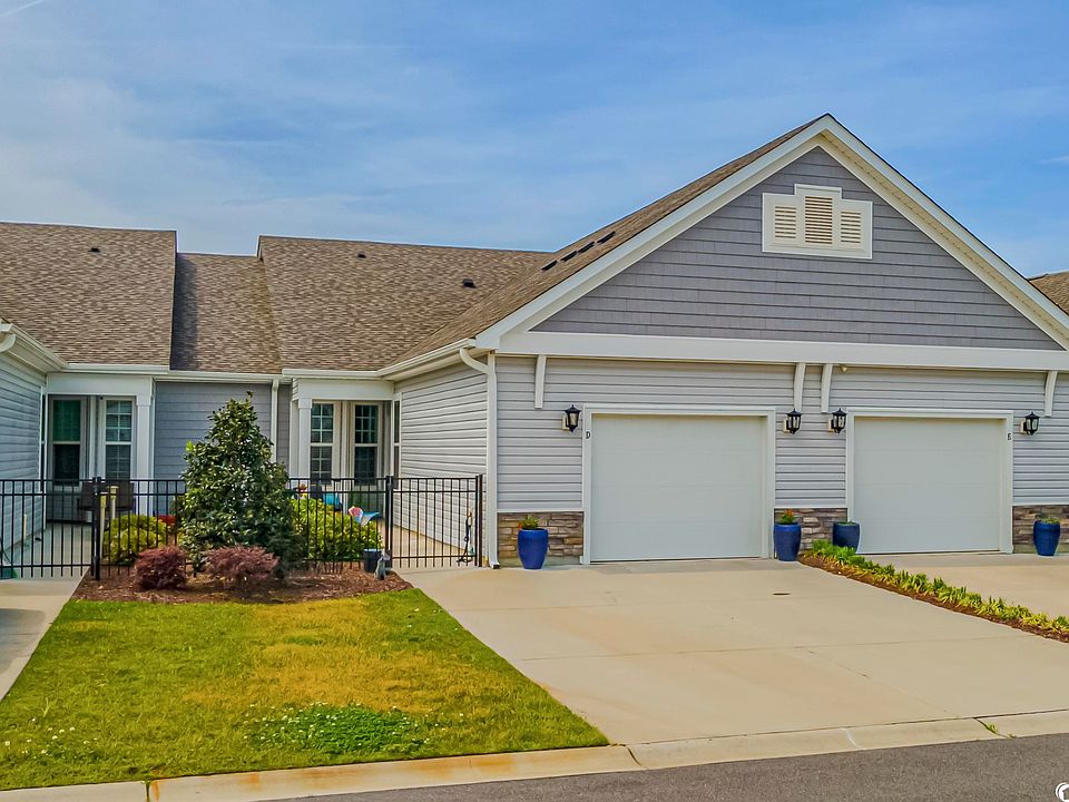 NO NEED TO BUILD!!! This LIKE NEW energy efficient Garden Home in Bella Vita looks like a model home and sits on a premium lot with a water view and offers a maintenance free lifestyle! Enter through a private gated courtyard into the beautiful open floor plan with laminate flooring throughout! The kitchen features upgraded cabinetry with glass fronts and wine storage, double bar seating, breakfast area, beautiful quartz counters & upgraded stainless-steel appliances including a convection oven! The living room/dining room areas boast cathedral ceilings and offer plenty of natural sunlight through the solar tubes! The Master bedroom has a bay window & tray ceiling with ceiling fan. The Master bath features a tile shower, double vanities & large linen closet! Relax on your large private screened porch that includes sun shades or enjoy a cookout on the extended patio! There’s plenty of room for your car in the oversized garage and lots of storage space in the pull-down attic with flooring added! The low monthly dues include exterior insurance, cable, water/sewer, trash, common maintenance, lawn care/irrigation and pool, clubhouse & fitness room!! All this and conveniently located near shopping, restaurants, entertainment, Myrtle Beach International Airport and only 5 miles to the beach!! Call today to schedule a private showing!