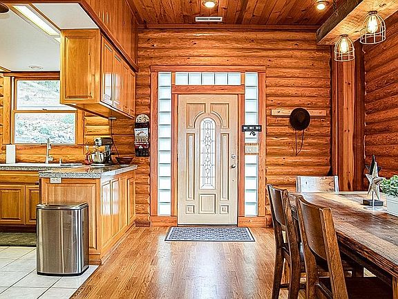 Peaceful Log Home is the secluded mountain hideaway delivering an atmosphere that is difficult to replicate. Breathtaking views of the valley & mountains. The home sits on 7.97 private wooded acres and was constructed in 1997 with timbers that were harvested and milled from the property. The custom light fixture in the dining room was meticulously designed and created with reclaimed wooden beams from The Macy's Warehouse in New York City. The home features two heat sources, one being a wood burning furnace that is connected to a thermostat in the house.The heat pump and the well pump were updated in the last year. The wood furnace can also heat the 2 water heaters in the home. Approximately 1.25 acres are fully fenced around the home also featuring RV hookups. Anyone considering purchasing the property should perform their own investigation into the uses and condition of the property. Buyer to do their own due diligence. Information shared is per the seller.