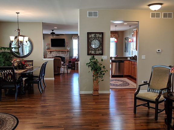 Move right into this exceptionally maintained and seldom available 2125 sq ft Briarwood model offering 2 Bedrooms PLUS an Office/Den, 3 Full Baths, plus a Finished Basement and a 3 Car Garage! The spacious and inviting foyer openly flows into the abundant living areas featuring 9' ceilings and beautiful hardwood flooring! The natural light shines through the walls of windows and solar light tubes. Entertain in the formal living room and dining room and relax in the family room with a beautiful and cozy gas-log stone fireplace! The upgraded kitchen features a breakfast bar and breakfast room with access to the patio, custom crowned 42" maple cabinets, backsplash, quartz countertops, top-line stainless appliances including a new refrigerator (2020) and dishwasher (2021). Retreat to the finished basement boasting a beautiful custom full-size bar with bar-back, a recreation room, bonus room/office, full bathroom, workshop and abundant storage areas! The extended primary bedroom includes a walk-in, plus wall closets, a private en-suite bathroom featuring a jetted tub, separate shower and double basin vanity. The second bedroom offers extended closet space and direct access to the second full bathroom. Work from home in the main floor Office/Den. Convenient main floor laundry room with full-size washer/dryer, cabinetry and laundry tub. Other newer features include Water heater/2017, Garbage disposal/2019, Radon mitigation system/2019 and Furnace/2020. Enjoy the active adult, easy living lifestyle that Carillon offers including Golf, Tennis, Bocce, Billiards, Indoor and Outdoor Pools, Clubhouse, Fitness Center and more! Super convenient to the I-90 Corridor!