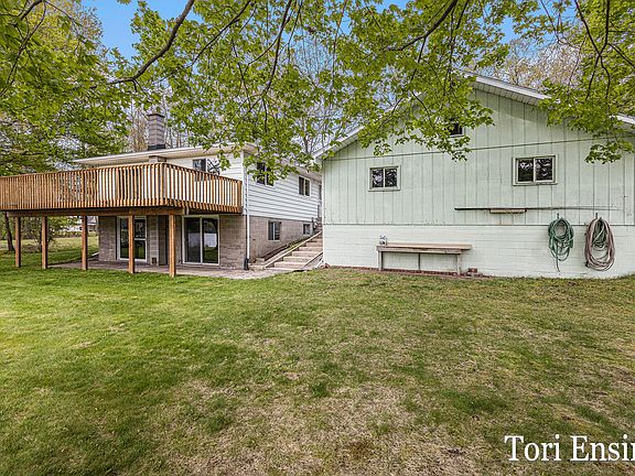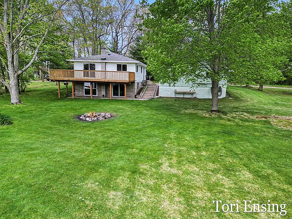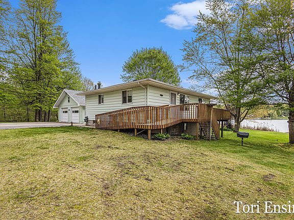 Come home to this wide expanse lakefront property nestled between designated wetlands, ensuring cozy privacy. Approx. 372 feet of private frontage. Enjoy the fireworks over the lake in July, boating and fishing all summer, ice fishing and skating in the winter. Main level of the home offers 2 bedrooms and 1 full bathroom. Slider door from living room to the wrap around deck overlooking the lake. Walk-out basement with 2nd living room and 3rd bedroom or office. Storage room with laundry. New roof in 2018. 2-stall detached garage with lot space for storage. All of this on 1.43 acres! Schedule a private showing today and make this gem home for the start of summer!