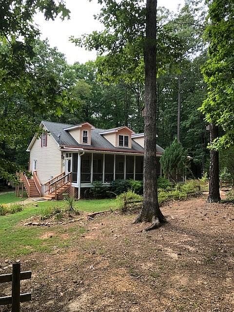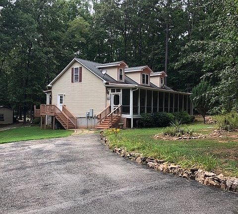 This beautiful home sits on 7.2 acres near Lake Gaston with NO HOA! Enjoy the peaceful setting from the huge 10 x 42 screened front porch, the sunroom or the multi-level rear deck! The spacious outdoor area features a paved driveway, double carport, sheds, garden, trails and plenty of room to hunt or enjoy nature. Inside offers 3 BR, 2.5 baths, kitchen with granite countertops, 1st floor master BR/bath with jacuzzi tub, separate shower and ample closet space. Upstairs offers 2BR and 1 bath. Conveniently located just 5 minutes (or less) from 2 marinas, public boat launch, waterfront dining, healthcare, golf and winery! This property has it all! Don't hesitate, make an appointment today!