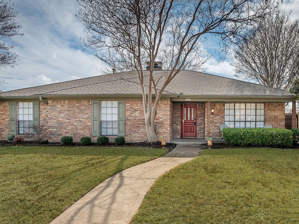 Updates galore! Located in the highly desirable Fountain Park neighborhood in Allen. Charming traditional with mature landscape and trees. Home is adorned with gorgeous nail down hand-scraped hardwood floors and wood beams in family room. Windows with plantation shutters. Natural light abounds in the sunroom great for an office. Kitchen has double ovens and plumbed for gas ~ open to breakfast room, family room and open access to sunroom with so much space for entertaining. Primary bedroom at back of home with ensuite bath upgraded with claw foot tub, frameless shower, designer tile, granite countertops, and two closets. Secondary bath boasts a frameless, walk-in shower. Oversized garage 25’ x 21’ highlighted with wood walls and corrugated tin ceiling. Attics are decked for ample storage. Updates: Electrical Panel 2024, AC Unit 2022, Roof 2019, Fence 2019, Water Heater 2017 and, Dishwasher 2022. Close to Allen ISD schools, shopping, and restaurants. This is home!