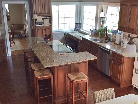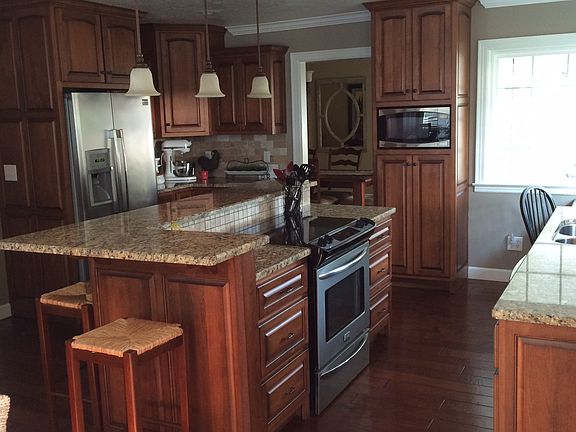 Close to Schools and Town Completely remolded throughout 4 bedroom 3.5 bath Master bath with Custom Cabinets and double Vanity Walk in Tiled Shower Hardwood throughout Custom Kitchen with granite Counter tops Vinyl double Hung windows All new fixtures Gas logs Double Garage with new door and detached 20 x 24 Shop