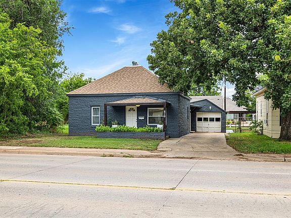 Say hello to 810 Sunset Drive in El Reno! This total remodel is located right on historic Route 66 highway just moments from downtown El Reno! With this one you will get a front row seat to one of kind small town events like Small Town Weekend featuring a classic car cruise, El Reno's Burger Day Festival and more! This three bedroom, 2 bathroom home has been updated from top to bottom and has so much to offer! Immediately as you walk in from the front door you are greeted with an open concept living and kitchen space. The living room features a modern accent wall and a large window. The kitchen features brand new cabinetry, quartz countertops, brand new stainless steel appliances and offers an island for additional prep space and seating! All three bedrooms are nicely sized and offer great closet space! The primary bedroom offers an ensuite bathroom with a shower option. The guest bathroom is centrally located and offers a shower tub combo! Additionally off the dining room is a bonus space with a fireplace and access to the backyard. There are lots of great option for this space! The backyard is fence, features mature trees and offers alley access to an additional parking space and garage access, PLUS a storm shelter! There is a lot to love about this one!