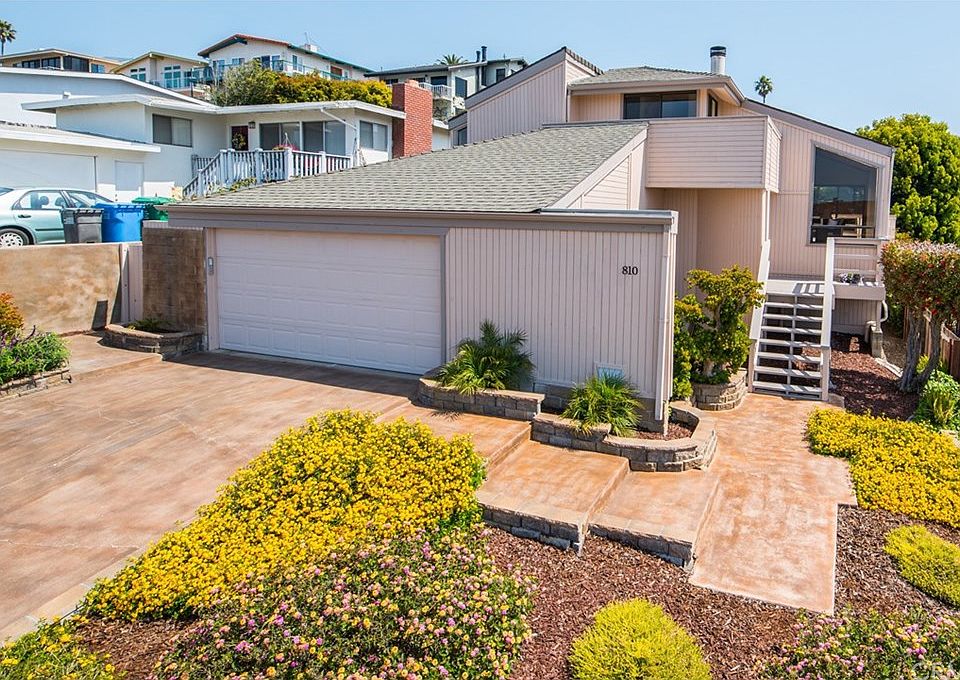 Outstanding white water and hillside views in sought-after Pismo Heights. This 3 bedroom, 2 full bath home has remodeled kitchen with granite counter tops, new stainless steel appliances, and breakfast bar. Watch whales from your living room with vaulted wood ceilings and cozy fireplace. Beautiful and unique architectural design with modern angles and loft for office or sitting room. The spacious patio is perfect for entertaining or to sit back and enjoy the breathtaking views. Additional features include updated master bath, new paint and new flooring throughout, stained concrete driveway, and 2-car garage.
