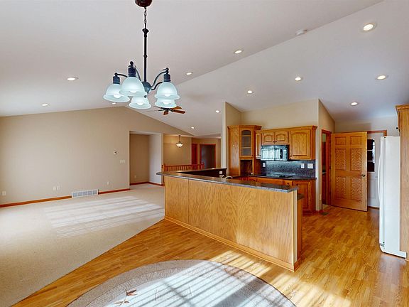 This beautiful condominium, built in 2010, offers a perfect blend of modern elegance and comfort. With its soaring vaulted ceilings, the space feels open and airy, creating an inviting atmosphere throughout. Featuring solid core doors for added privacy and soundproofing, this home is designed for tranquility and convenience. This property features one large primary bedroom with a master bath and walk-in closet. A second bedroom conveniently located off the main floor bathroom. Located near the edge of town, this property enjoys serene views of picturesque landscape, offering a peaceful retreat with easy access.. A perfect place to call home!