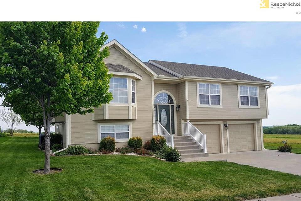 Wow, what a view! Situated at the end of the row and perched on top of the hill, you can see for miles! Here's your chance to grab a solid split-entry home in Kearney. Hardwood floors in Kitchen/Dining area. Vaulted ceiling and gas fireplace in the generously sized living room. Master has it's own bath with with dual vanities, shower and separate tub. Laundry is conveniently located in the hall. Finish the basement for another living space, or additional bedroom. Extra deep garage.