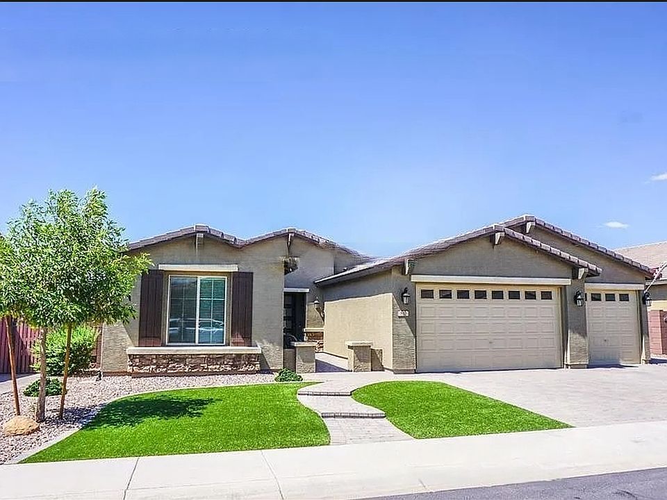 A Beautiful Pet Friendly single story 2200 Square Foot, 4 Bedroom 2 Bath, 4.5 Car Garage Fulton Home for Rent This home is in the highly sought after Ironwood Crossings. A huge pool aquatic complex, horseshoes, 9 disc golf course, soccer fields, sand volleyball courts, basketball courts, bocce ball, pickle ball, tot lots & plenty of other activities surrounds your new home. This home is considered to be in Queen Creek so you will have resident access to Family Frontier Park facilities. Fees for Family Frontier to be paid by tenant if interested. You will be surrounded by amazing neighbors Interior of home has tile throughout all the common areas and carpet in all the rooms. Living room has a custom built in entertainment center where you can hide your surround sound speakers behind the stainless mesh inlayed doors. Kitchen is upgraded with granite, farm sink and lots of drawers in the cabinets. Refrigerator in kitchen stays. Laundry room has a utility sink and added custom-built cubby cabinets where your kids can hang their backpacks, hats and hoodies. There is a door from master bedroom to back patio. The garage is a 4.5 car garage with a total of 1200 square feet of space for garage activities. Also has built in cabinets, sink and a window unit air conditioner/heater. All the garage walls and ceiling are insulated. The floors coated with commercial grade epoxy. Refrigerator in garage will stay. On the exterior the house has an 8-foot RV Gate with a huge concrete slab enough to fit 3 cars behind the gates. There is a custom-built 7'x10' shed with lighting that is controlled from a switch inside the garage. Backyard has a custom-built grill island that is fed by the home natural gas. This home will be available July 1, 2025, but can be available earlier if needed. Tenants are responsible for all utilities. First month's rent and security deposit due at lease signing. NO SMOKING allowed. Rent $3250 (includes HOA fee & Sewer) Security Deposit $3250. Application fee: $50 each adult over 18, HOA fee and Sewer is included in the rent. Pet Fee is $350 nonrefundable per Dog/Cat. Tenant responsible for: water, electric, trash, internet. Yard maintenance is responsibility of Tenant Reach out to schedule viewing asap Rent $3250 (includes HOA fee & Sewer) Security Deposit $3250. Application fee: $50 each adult over 18, HOA fee and Sewer is included in the rent. Pet Fee is $350 nonrefundable per Dog/Cat. Tenant responsible for: water, electric, trash, internet. Yard maintenance is responsibility of Tenant