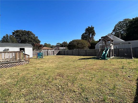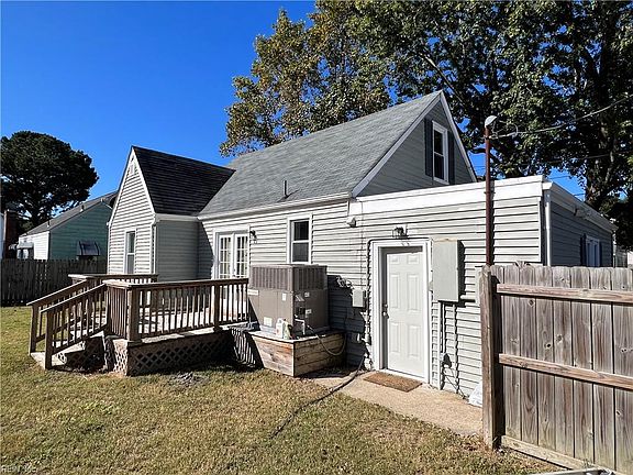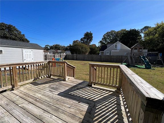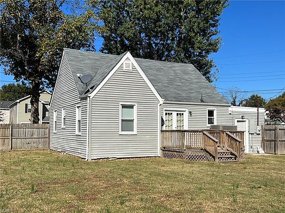 Wonderful Cape Cod on large corner lot! Enjoy outdoor entertaining on the deck of fully privacy fenced backyard measuring approximately 100' X 50'. Freshly painted with updated kitchen and baths. Granite counters in the kitchen with new appliances and French doors leading to the deck. Separate utility/laundry room with full sized stacked washer/dryer and outside entrance to backyard. Three bedrooms and one full bath on main level with a fourth bedroom and full bath on the upper level. Large Liberty shed with electric, window A/C, refrigerator, garage and side entrance doors make this a great workshop or personal space. Ford Park neighborhood is a great place to call home! Good location for commuting to our military bases. Must see.