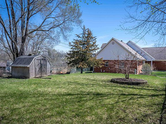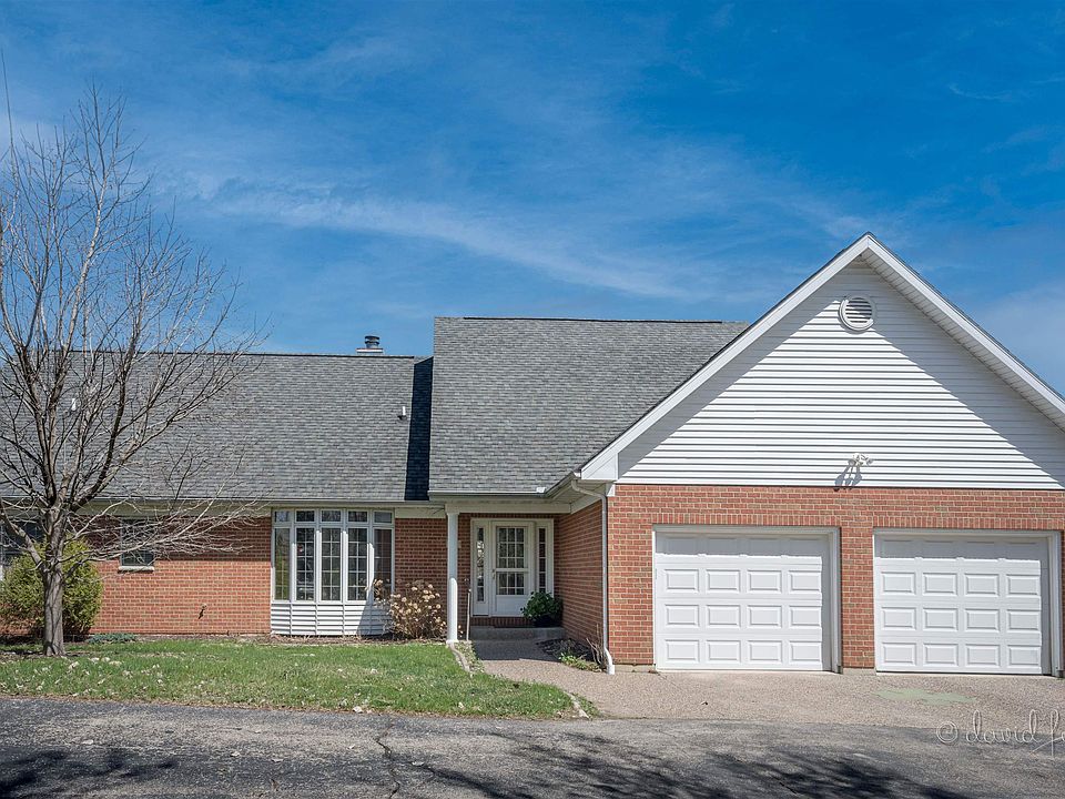 Modern luxuries in the heart of Galena! Quality and attention to detail is evident throughout this 4 bed/3.5 bath full brick ranch offering main level living floor plan with lots of upgrades, double-sized corner lot with fenced yard (.20 acres total) and beautiful setting with elevated in-town views, all in a location just blocks from vibrant Main St., Galena. Open and airy main level features voluminous nine-foot ceilings, warm and inviting living room with the warmth of a brick-surround gas fireplace and gorgeous wood flooring, generous dining room with more wood flooring that opens to covered rear porch, upscale kitchen with loads of cabinetry, huge center island, stainless appliances and gas range, granite counters and backsplash, under-cabinet lighting, and access to composite side deck with included Weber grill connected to dedicated gas line, laundry room/half bath with full size front load washer/dryer, spacious master bedroom and private master bath with whirlpool tub, comfortable guest bedroom, and nicely appointed full bath. Upper level houses two additional bedrooms each with window alcove, large shared full bath, and walk-in storage closet. Additional amenities include built-in speaker system with speakers in living room, dining room, master bedroom, covered porch and deck area, ceiling fans in all four bedrooms, living room, stairwell and garage, beautiful 6-panel doors and Andersen windows. Attached garage has plenty of room for vehicles, storage and work area, and has deep basin sink. Sweeping fenced side yard with storage shed offers plenty of space to enjoy the outdoors and take in the beautiful surroundings. Square footage is approximate.