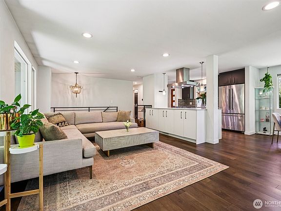 Motivated Sellers! Live in a modern treehouse in the heart of West Seattle! 3 beds, 2.75 baths, 1,580 sq ft. Primary suite w/ walk-in closet, en-suite bath, & private balcony. Gourmet kitchen w/ high-end KitchenAid appliances, Carrara Caldia quartz, & custom cabinetry. Hardwood floors, premium tile, wet bar + den on lower level. 3-tiered deck, A/C, extra off street parking, and large garage w/ shop space. Private 8,500 sq ft lot on greenbelt w/ mature fruit trees. Updated electrical, move-in ready. Easy access to Alki, downtown, & bus line.