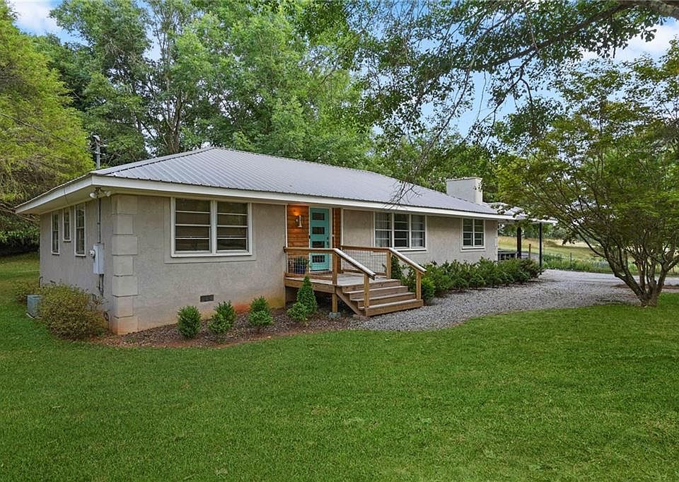 Nestled between a private forest and grazing pastureland, this 4.1 acre property hosts a Mid-Century Ranch boasting cozy character and craftsmanship. A gourmet kitchen features a copper farmhouse sink, gas oven/range, stainless steel appliances, granite countertops and backsplash. Directly off the kitchen, the cozy den is equipped with a wood burning fireplace and built-in bookshelves. Entertain in the spacious separate dining and living areas. Large bedrooms have ample closet space, hardwood floors, fresh paint and window treatments. Each bathroom features the original 1960's tile, unique to the era. Take in the serenity of the property by relaxing on the expansive covered side deck or lounging in the outdoor sitting area. Only minutes from the Serenbe community where you can enjoy fine eateries, shopping and seasonal events. Take in a scenic walk or bike ride at the nearby Cochran Mill Park. 30 minutes or less from Atlanta's Hartsfield-Jackson Airport, Downtown Atlanta, Peachtree City, Newnan, and Trilith Studios.