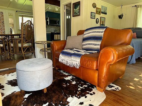 Casita 2 sits on 3 private acres in South East Austin alongside 4 other casitas and one RV. A small open floor plan bungalow with private deck. Lots of nature and a beautiful bluff surrounds this property. Wildlife frequents this property at night and early mornings. Plenty of parking for 2-3 cars. Security cameras on property. Cowboy Pool in the summer. Friendly little compound of tech peeps and artists. Great for a single person or couple transitioning to a new city. All bills included in rent! Home comes furnished with tasteful and stylish decor. Set up like an Airbnb. No smoking indoors. Pets allowed on a case by case basis (no aggressive breeds) . 3 month lease minimum. One month rent + deposit up front. Must prove income, pass BG + credit check.