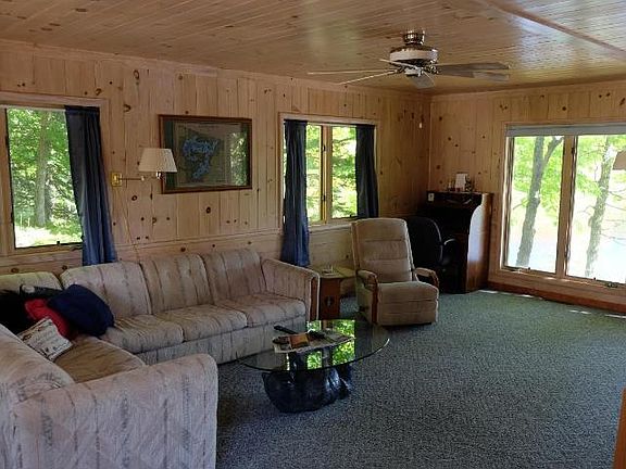 Wonderful, affordable, year-round, Oxbow Lake home. Few properties offer such fantastic lake views. Situated only 40 feet from the waters edge, this retreat offers the perfect amount of elevation for those incredible views and yet it still has easy access to the water. The beautifully wooded, two-and-a-half-acre parcel offers 465' of mostly sand frontage and excellent PRIVACY. There is a large master suite and living room that have been added. Combine that with two other bedrooms and lower bunk room, and you have plenty of room for family and friends. Heck even the large detached garage has extra loft space that could be used for a multitude of purposes This really is a very nice property that with some updates and your "touch" will quickly check all the boxes!