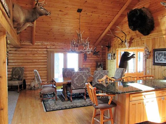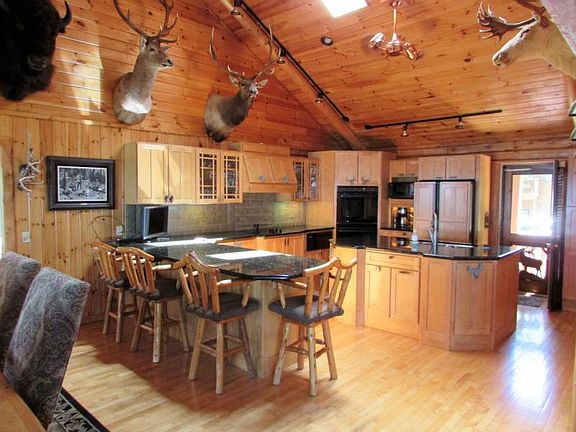 Beautiful log cabin home! This custom built home offers three bedrooms and three bathrooms, enough space to fit your entire family! The gorgeous kitchen features granite counter tops, double ovens, counter top range, warming oven and bar for added seating, Plus many custom, high end touches! The dining area looks out onto the lake. The spacious living room offers dramatic views of Lake Huron with access to the large deck in front and beautiful stone fireplace, while the cozy den is lined with windows for a panoramic view! This property also has a heated detached three car garage with 750 square feet of finished bonus room above, complete with hot water heated floors!
