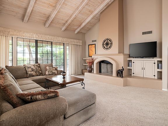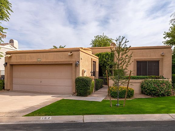 This beautiful patio home is in the guard gated community Cameldale. Centrally located in old town Scottsdale with close proximity to the green belt, Scottsdale Fashion Square, Spring Training, the 101 and numerous golf courses. Featuring 3 bedrooms (the 3rd bedroom currently does not have a door) and 2 baths this elegant home is an ideal second home or full time residence. Hardwood flooring, fireplace, stunning vaulted beamed ceilings, kitchen with granite countertops, vaulted ceilings and cozy breakfast room. Private wrap around backyard with two patio areas and a two car garage with tons of storage. There are also two heated community pools and spas as well as a lit tennis court.