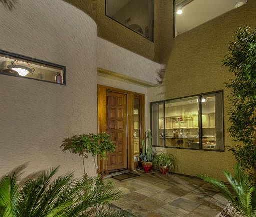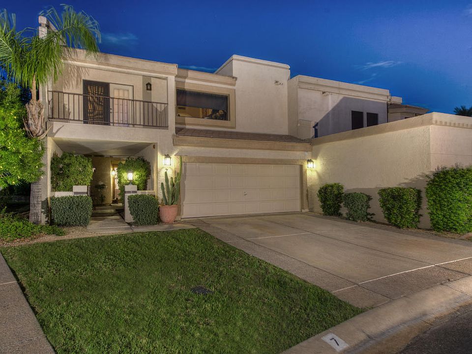 Cameldale is a guard-gated community located next to the Greenbelt, and is one of Scottsdale's most prestigious addresses. As you enter your private front courtyard oasis, a sense of calm and serenity passes over you. The home offers exquisite attention to detail and high end finishes. Travertine flooring, granite, accenting backsplashes in all the right places. The gourmet kitchen would delight any chef with its abundant cabinetry, walk-in pantry, updated appliances, island, eating area, and washer/dryer. The Great room with fireplace has custom lighting along with a Dagar entertainment wall. Upstairs offers 3 bedrooms, one currently being used as an office. The master suite has 2 large walk-in closets, sitting area, and its own washer/dryer. The location is Borders Common Area, Corner Lot, Mountain View(s), Biking/Walking Path, Comm Tennis Court(s), Community Pool Htd, Community Spa Htd, Gated Community, Guarded Entry, Near Bus Stop, On-Site Guard